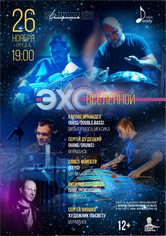 «Эхо Вселенной» - музыкально- световой проект, рождающий атмосферу медитации. Это моменты, от которых пробегает ток, этнические ритмы с магией света, которые превращают зал в пространство вне времени. Это результат гигантского творческого пути, опыта, проб и ошибок, словно звуки Космоса, которые уносят всё дальше и дальше, вглубь себя, по ту сторону души.