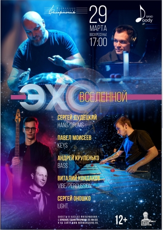 Наиболее яркими и запоминающимися для слушателей оказались два последних проекта Doody Band - «Музыка Света» и «Музыка Света. Перезагрузка», когда на сцене филармонии творилась настоящая магия. Именно эти программы дали толчок для создания еще одного проекта - «Эхо Вселенной», который можно расценивать как завершающую часть трилогии. Благодаря новому участнику - другу и прекрасному музыканту , а также новому инструменту в проекте – Хангу – Doody Band выходит в новый космический формат, более красочный, более медитативный, осмысленный и яркий. Ещё больше Ханга, ещё больше погружения. Очень ждём вас!»