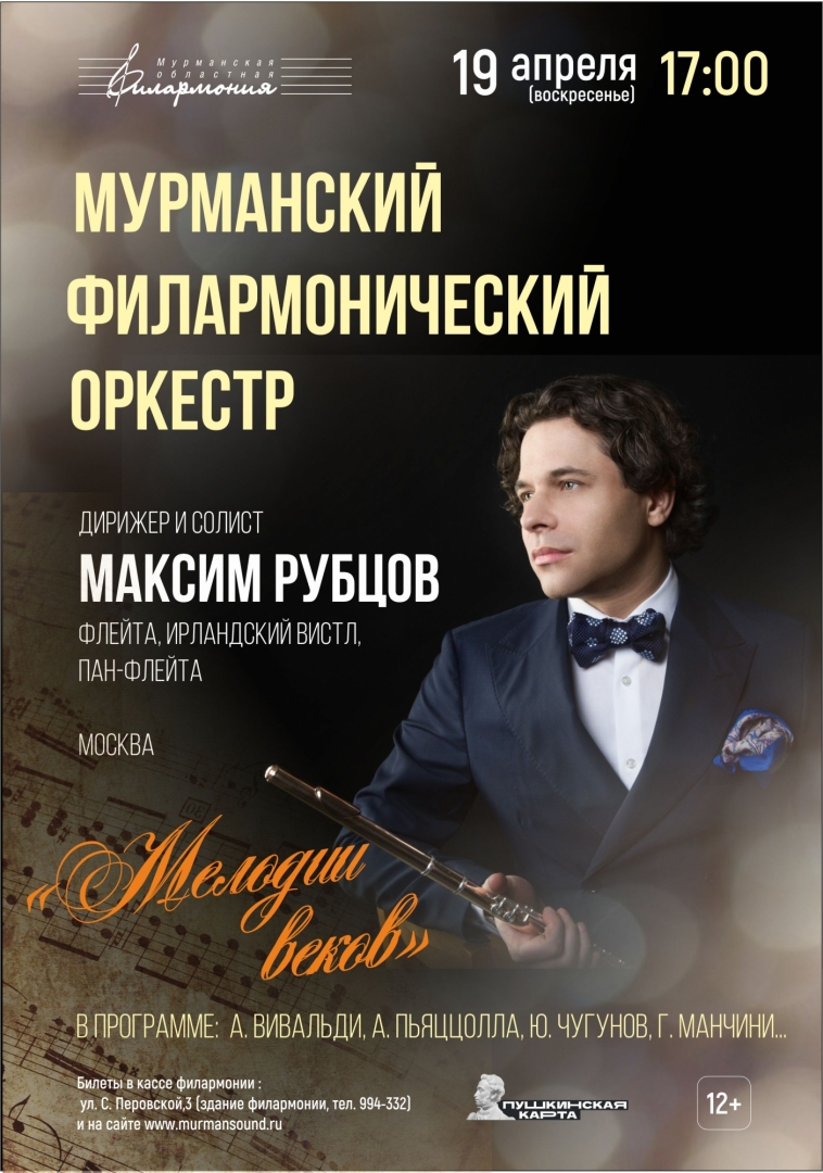 Концертная программа «Мелодии Веков» представляет Максима Рубцова как дирижёра оркестра и солиста, играющего на пяти инструментах: флейта, альтовая флейта, флейта-пикколо, ирландский вистл и пан-флейта.
