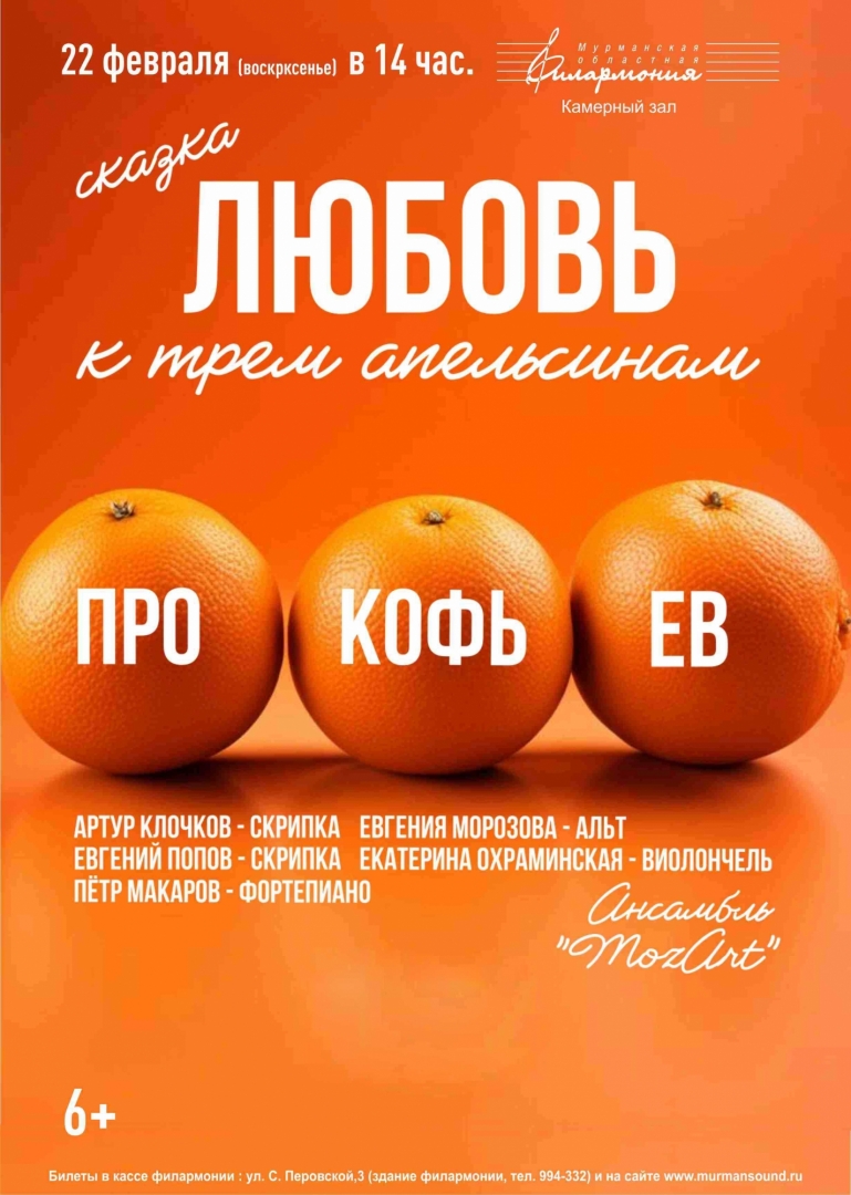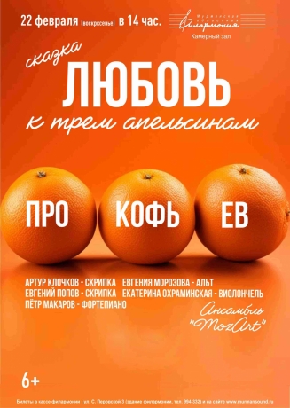 Знаменитый советский композитор Сергей Прокофьев очень любил детей. Многие поколения выросли на его симфонической сказке "Петя и Волк", благодаря которой познакомились с удивительными инструментами оркестра. Ансамбль "MozArt" подготовил авторскую программу о жизни и творчестве композитора, которую представит слушателям в виде волшебной сказки, полной юмора и неожиданных поворотов. В программе прозвучит музыка из балетов Прокофьева "Золушка", "Ромео и Джульетта", оперы "Любовь к трем апельсинам" и других известных сочинений. Программа рассчитана на слушателей любого возраста.