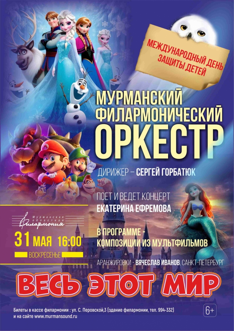 В программе - композиции из мультфильмов: Моана-1, Аладдин, Русалочка, Холодное сердце, Ходячий замок, Супербратья Марио; фильмов о Гарри Поттере.