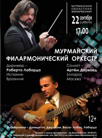 Дирижер –Роберто Лаборда, Испания- Бразилия. Солист – Артём Дервоед (гитара), Москва. Концертный зал