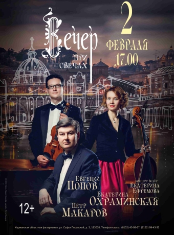 Е.Попов (скрипка), Е. Охраминская (виолончель), П. Макаров (фортепиано), Ведущая – Е. Ефремова.. ВСЕ БИЛЕТЫ ПРОДАНЫ!