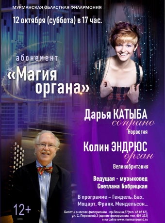 Дарья Катыба (сопрано), Норвегия и Колин Эндрюс (орган), Великобритания. Абонемент "Магия органа"