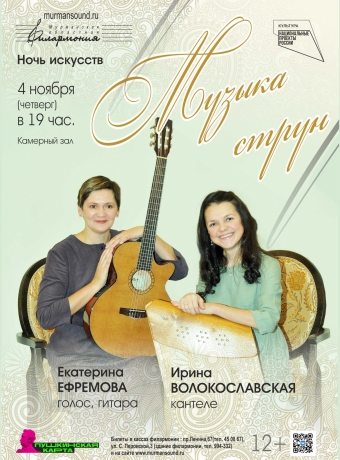 Ночь искусств. Екатерина Ефремова (гитара, голос) и Ирина Волокославская (кантеле). Камерный зал