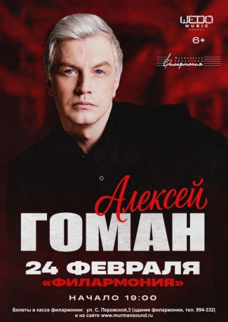 Алексея Гомана, который родился и вырос в Мурманске, публика прозвала «мурманский соловей» за его уникальный баритональный тенор и светлое обаяние. 24 февраля вокалист возвращается на сцену, чтобы подарить вам вечер, полный тепла, любви и настоящего живого звука! Он выступит с программой, состоящей из любимых романтических, лирических и ностальгических песен и своими собственными композициями.