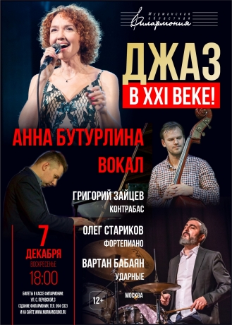 В программе «Джаз в 21 веке!» Анну сопровождают московские джазовые музыканты.