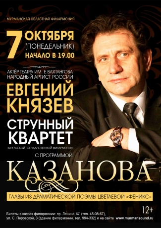 Магнетический голос актёра поведает о самой большой любви и самой большой трагедии в жизни знаменитого героя. Новая программа неразрывно связана с одним из шедевров Вахтанговской сцены — спектаклем «Три возраста Казановы».
