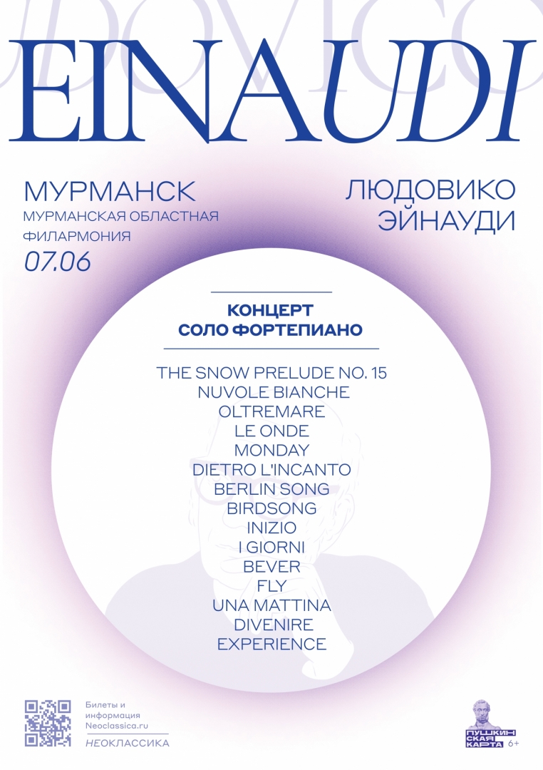 Людовико Эйнауди вне всяких сомнений — один из самых выдающихся представителей неоклассики. Каждый его альбом получает мировое признание, каждая его работа вдохновляет на новые размышления и медитации. Агентство «Неоклассика», впервые познакомившее российских слушателей с творчеством этого прекрасного композитора, дарит возможность насладиться его лучшими произведениями в сольном исполнении в особой камерной обстановке. Оставшись один на один с роялем, виртуозный пианист ансамбля «Солисты Неоклассика» передаст всю глубину эмоций, авторский замысел и гамму чувств, которые маэстро вложил в свои творения. В программе концерта — самые популярные пьесы и неочевидные шедевры знаменитого итальянца, являющие собой высшую форму сентиментального минимализма. Жизнеутверждающие, пронзительные мелодии, в том числе вошедшие в саундтреки к культовому фильму «1+1», триумфатору последнего «Оскара» «Земля кочевников», «Черный лебедь» Даррена Аронофски, «Мамочка» Ксавье Долана.