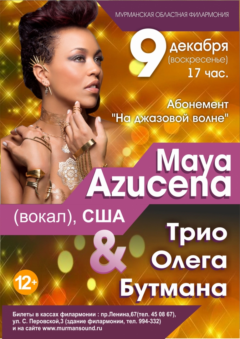 Приглашаем вас на концерт замечательной вокалистки Maya Azucena из США и трио именитого джазового музыканта Олега Бутмана!