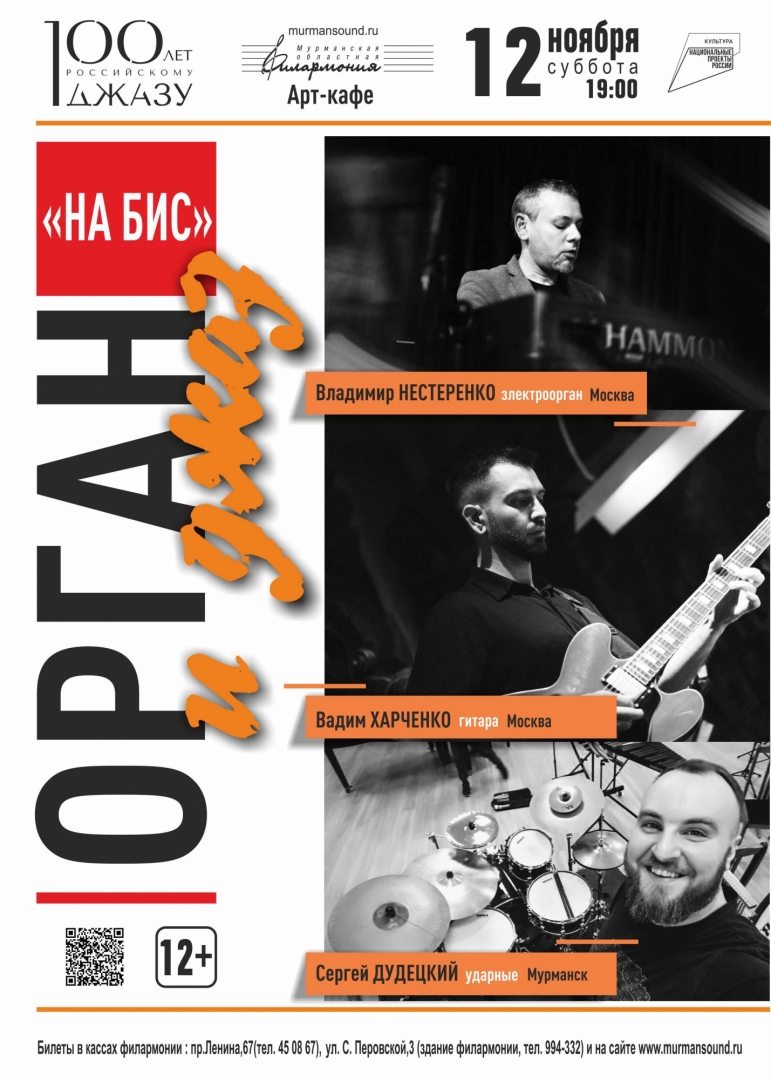 Впервые на сцене Арт-Кафе филармонии прозвучит электроорган. Программа названа «На БИС», потому что это второй концерт трио Владимира Нестеренко, на котором будут исполнены некоторые композиции из первой программы, а также известные джазовые стандарты в весьма интересных и современных аранжировках… на органе.