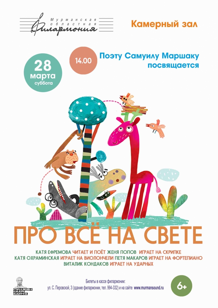 Сказки одного из самых любимых российских детских поэтов Самуила Маршака великолепны! В них за внешне шутливой, безобидной фабулой кроется мудрое слово о человеке, о смысле его жизни. Прозвучат любимые детские песни Исаака Дунаевского и Сергея Никитина, а также классические миниатюры Сергея Прокофьева, Владимира Дашкевича.