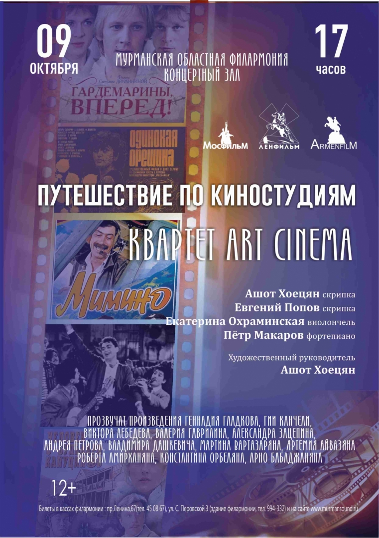 Квартет ART CINEMA – создан в 2021 году по инициативе Ашота Хоецяна - художественного руководителя и первый скрипки ансамбля. В репертуаре квартета, как и следует из его названия – киномузыка. Все сочинения исполняются в уникальной обработке и переложении Ашота Хоецяна.