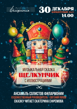 С артисткой филармонии Екатериной Ефремовой, читающей текст сказки Гофмана, зрители вместе с Мари и прекрасным Принцем-Щелкунчиком перенесутся в чудесный мир, где есть Марципановый замок, озеро Миндального молока и Леденцовый луг. Фантастические сны здесь оживут благодаря неповторимой музыке Петра Ильича Чайковского в исполнении Ансамбля солистов филармонии под управлением Евгения Попова.