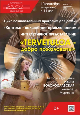 Цикл познавательных программ для детей, который позволит познакомиться с удивительным волшебным звучанием карело-финского национального инструмента КАНТЕЛЕ. Программа подготовлена с учетом возрастных особенностей детей раннего возраста на простом и понятном языке. Все концерты проходят в игровой интерактивной форме , что позволяет маленьким слушателям стать непосредственными участниками музыкального действа.