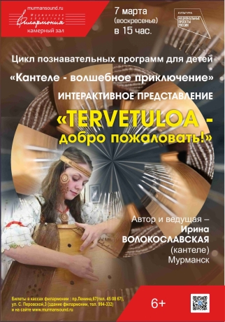 Цикл познавательных программ для детей, который позволит познакомиться с удивительным волшебным звучанием карело-финского национального инструмента КАНТЕЛЕ. Программа подготовлена с учетом возрастных особенностей детей раннего возраста на простом и понятном языке. Все концерты проходят в игровой интерактивной форме , что позволяет маленьким слушателям стать непосредственными участниками музыкального действа.