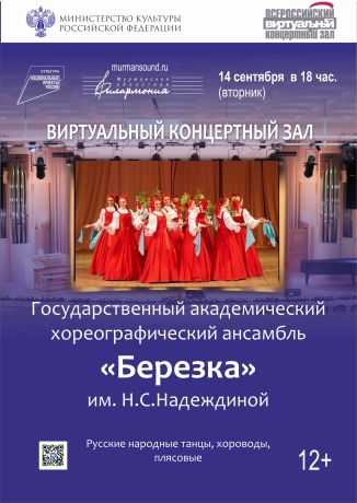 Государственный академический хореографический ансамбль «Берёзка» им. Н.С.Надеждиной - коллектив, признанный национальным достоянием России. «Берёзка» более 70 лет своим творчеством рассказывает миру, что такое красота по-русски. Красный сарафан, зелёная веточка берёзки, взмах бирюзового платочка - девичий хоровод, с которого в 1948г. началась «Берёзка. Великий русский хореограф, человек высочайшей культуры и эрудиции Надежда Надеждина создала шедевр на все времена, и он вобрал в себя всю красоту и поэзию, саму суть русской души.