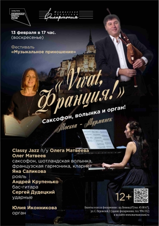И, конечно, как всегда на концертах Олега Матвеева вы услышите не только саксофон и кларнет, но и так полюбившуюся всем шотландскую волынку и совсем редкий инструмент – французскую гармонику (аккордину)!