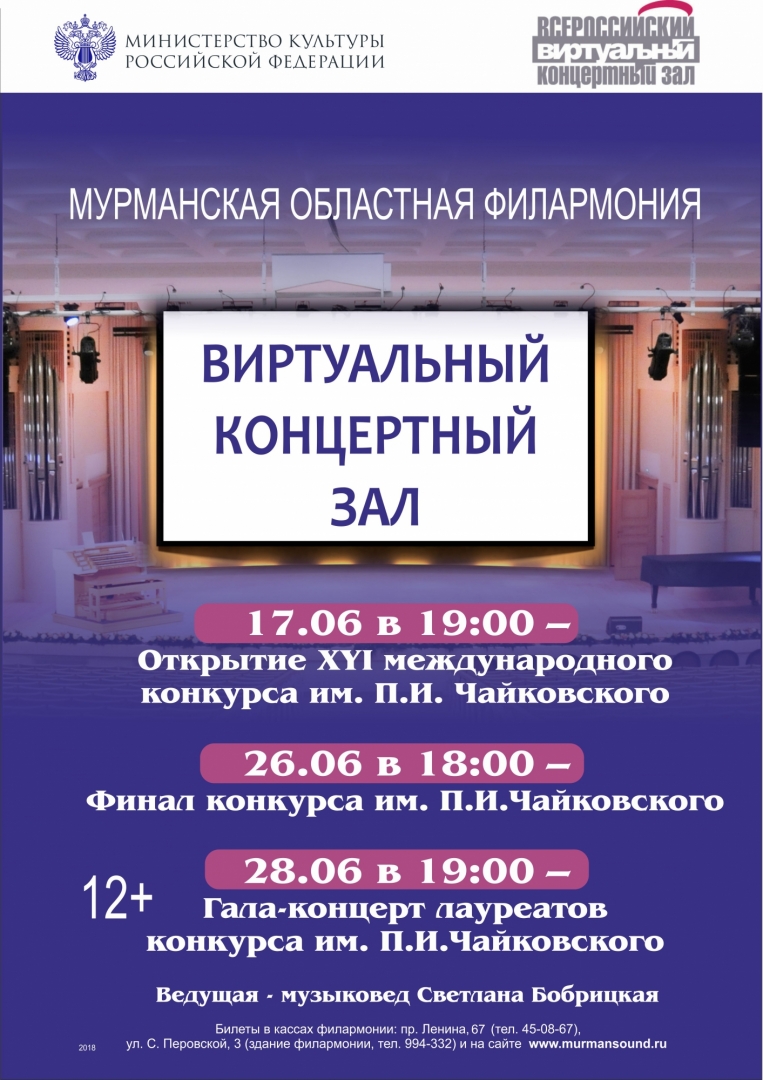 17 июня в Москве состоится торжественное открытие XVI международного конкурса им. П.И.Чайковского. Приглашаем вас в наш Виртуальный концертный зал посмотреть прямую трансляцию этого крупнейшего события в мире классической музыки. У нас также будут транслироваться финал конкурса 26 июня и гала-концерт лауреатов 28 июня. Напоминаем: виртуальный зал , оборудованный специальной техникой, большим экраном создаем эффект присутствия. Вы получите незабываемые впечатления! Вход свободный!